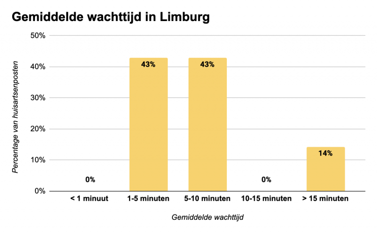 Omdat Limburg over zeven huisartsenposten beschikt, geldt deze lange gemiddelde wachttijd voor 14% van de huisartsenposten in Limburg.